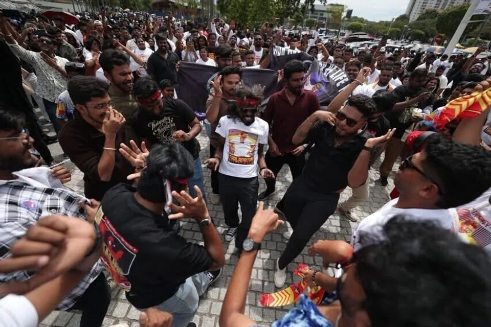 இசை வெளியீட்டு விழாவை முன்னிட்டு புக்கிட் ஜலில் விளையாட்டரங்கிற்கு வெளியே ஆடும் ரசிகர்கள். - படம்: மாலிக் ஸ்ட்ரீம்ஸ் புரோடக்‌ஷன் அண்ட் டிஸ்ட்ரிபியூஷன்