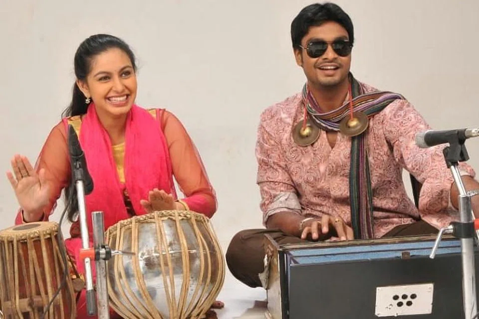 'அடிடா மேளம்' படத்தில் இடம்பெறும் காட்சியில் அபய் கிருஷ்ணா, அபிநயா