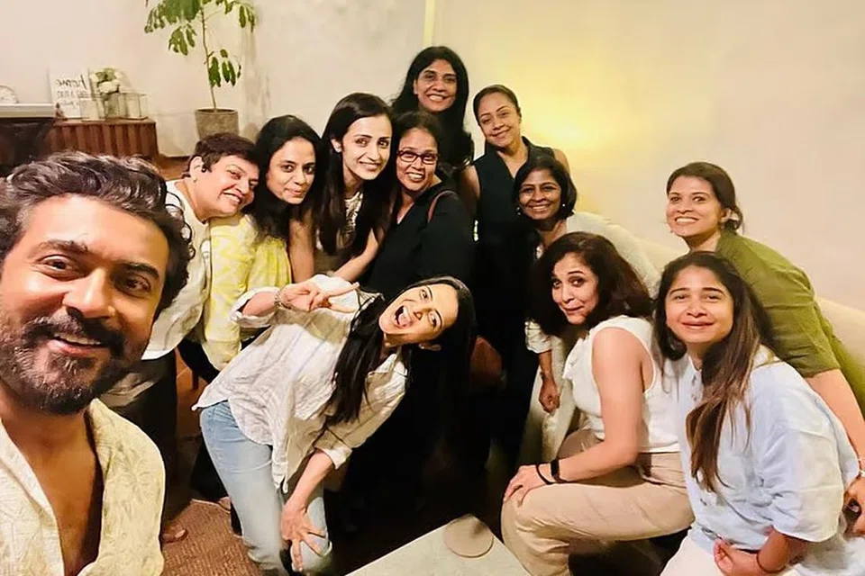 இதற்கிடையே, சூர்யா, ஜோதிகா தம்பதியர் மும்பையில் உள்ள வீட்டில், தங்களுக்கு நெருக்கமான திரையுலக நண்பர்களுக்கு விருந்தளித்து மகிழ்ந்துள்ளனர். அப்போது எடுக்கப்பட்ட புகைப்படங்களை சமூக ஊடகங்களில் பகிர்ந்துள்ளார் ஜோதிகா.