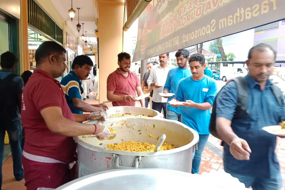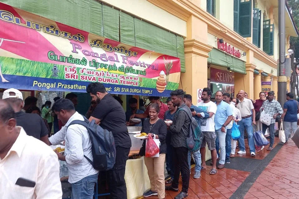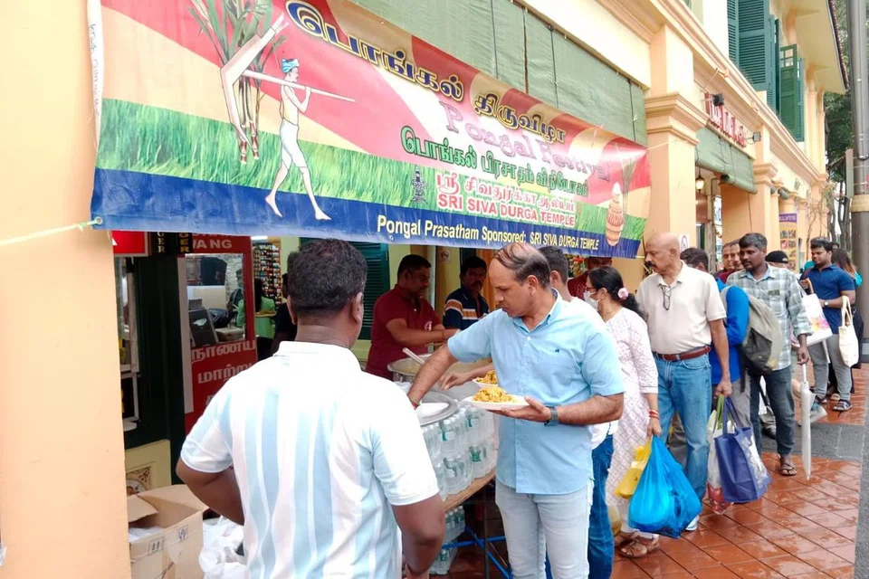 புதன்கிழமை (ஜனவரி 15) பிற்பகல் கேம்பல் லேனில் ஒரு பெரிய கூடாரத்தை அமைத்து, ஆலய ஊழியர்களும் தொண்டூழியர்களும் இணைந்து கிட்டத்தட்ட 2,000 பேருக்கு புளிச்சாதம், கொண்டைக்கடலை வழங்கினர்.