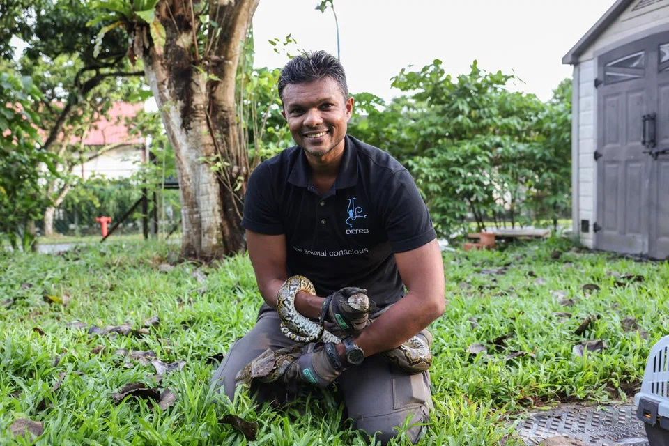 அண்மையில், புளோக் 925, ஜூரோங் வெஸ்ட் ஸ்திரீட் 92ன் இரண்டாவது மாடி வீட்டிற்கு வெளியே குளிர்சாதனப் பெட்டியின் காற்றழுத்தியில் (compressor) மலைப்பாம்பு ஒன்று கண்டறியப்பட்டது. அந்தப் பாம்பை மீட்டெடுப்பதற்கு முன்பு அது எவ்வாறு சுருண்டிருந்தது என்பதை திரு கலைவாணன் உறுதி செய்துகொண்டார்.