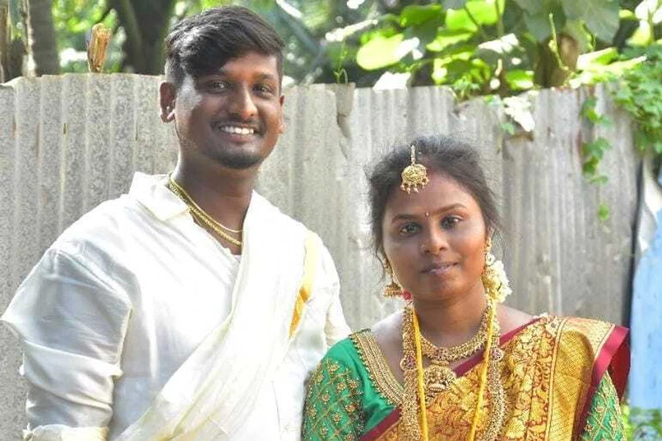 பதின்மூன்று ஆண்டுகள் காத்திருந்து காதலியைக் கரம்பிடித்த சில நாள்களில் பணிக்குத் திரும்ப வேண்டிய சூழல் ஏற்பட்டதால் காணொளி அழைப்பில் தலை தீபாவளியைக் கொண்டாடுகிறார் வெளிநாட்டு ஊழியர் முருகானந்தம், 30.