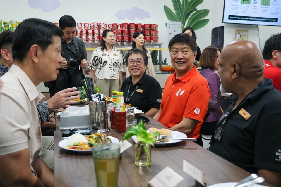 தேசியத் தொழிற்சங்க காங்கிரஸ் தலைமைச் செயலாளர் இங் சீ மெங்குடன் (வலமிருந்து 2வது) உணவருந்தும் ஜோசஃப் (வலக்கோடி). - படம்: சாவ்பாவ்