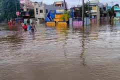 ஆந்திராவில் கடந்த இரண்டு தினங்களாக இடைவிடாது கொட்டி வரும் கனமழையால் விஜயவாடா நகரம் ஏரி போல காட்சி அளிக்கிறது. 40% நகரம் நீரில் மூழ்கியுள்ளது. 50 ஆண்டுகளில் இல்லாத அளவுக்கு தலைநகர் பகுதியில் மழை கொட்டியுள்ளது.