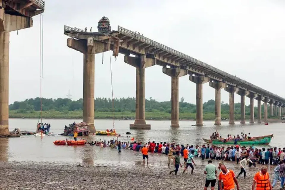 குஜராத் மாநிலம், வதோதரா மாவட்டத்தில் உள்ள மஹிசாகர் ஆற்றுப் பாலம் ஜூலை 9 ஆம் தேதி காலை 7:30 மணியளவில் இடிந்து விழுந்தது.