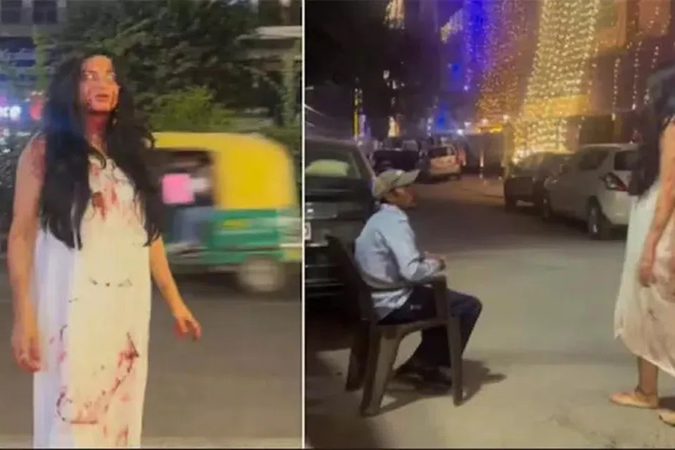 ஒப்பனைக் கலைஞரான ஷைஃபாலி, பேய் வேடமிட்டுத் தெருக்களில் உலா வந்தார். அதை ‘ரீல்ஸ்’க்காகக் காணொளியாகவும் பதிவு செய்தார்.