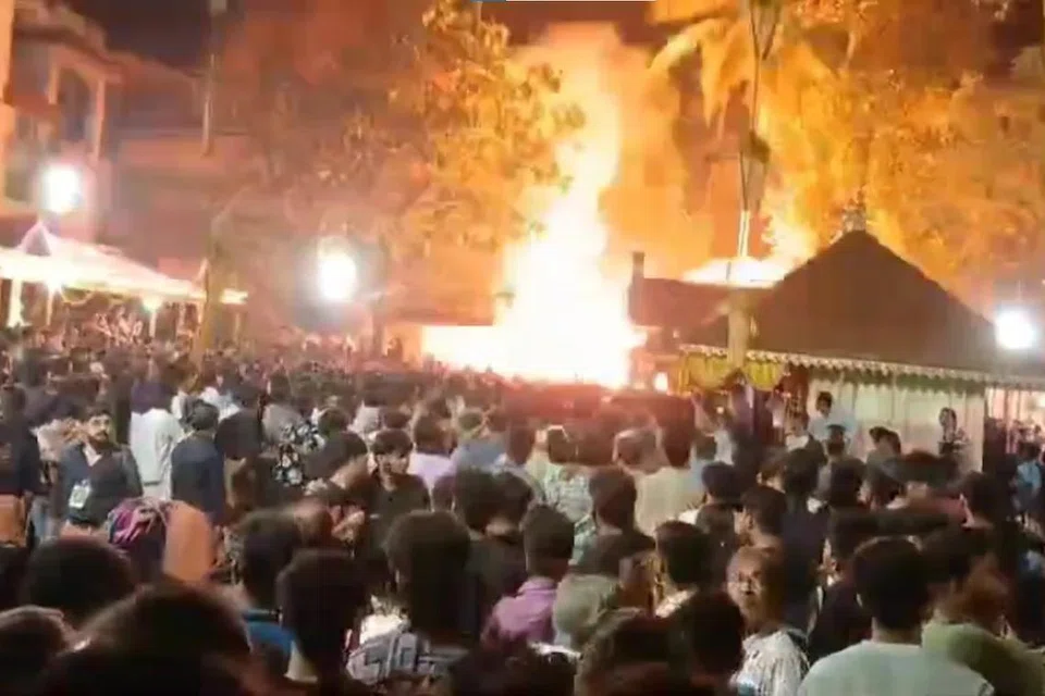 கரும்புகை சூழ்ந்திருக்க, பக்தர்கள் பதறியடித்துக்கொண்டு அங்கும் இங்கும் ஓடியதைக் காணொளிப் பதிவுகளில் காண முடிந்தது.