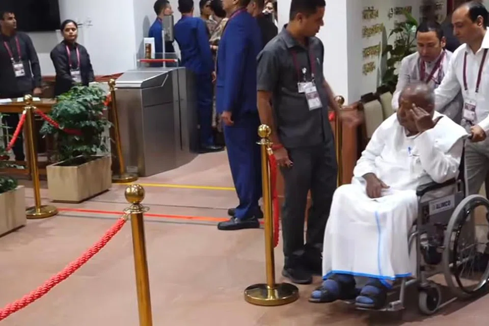 முன்னாள் பிரதமரான தேவகவுடாவுக்குத் தற்போது 92 வயதாகிறது. எனினும், சக்கர நாற்காலியில் வந்திருந்து, அவர் துணை அதிபர் தேர்தலில் வாக்களித்தார்.