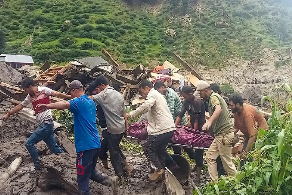 மேகவெடிப்பு ஏற்பட்டதை அடுத்து, சஷோட்டி கிராமத்தில் திடீர் வெள்ளம் கரைபுரண்டோடியது.