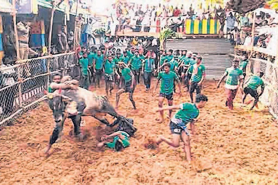 ஸ்ரீவில்லிபுத்தூர் அருகே உள்ள கூமாபட்டியை அடுத்த நெடுங்குளத்தில், ஊர் மக்கள் சார்பில் நேற்று ஜல்லிக்கட்டு நடத்தப்பட்டது. இதற்காக பிரம்மாண்ட ஏற்பாடுகள் செய்யப்பட்டு இருந்தன. ஜல்லிக்கட்டில் 300 காளைகள் அவிழ்த்து விடப்பட்டன. சில காளைகள் சீறிப்பாய்ந்து வீரர்களைத் திக்குமுக்காடச் செய்தன. 150க்கும் மேற்பட்ட மாடுபிடி வீரர்கள் களமிறங்கினர். காளைகள் குத்தியதில் இருபதுக்கும் மேற்பட்ட வீரர்கள் காயம் அடைந்தனர். அவர்களுக்கு உடனடியாக சிகிச்சை அளிக்கப்பட்டது. காளைகளை அடக்கியவர்களுக்குப் பல்வேறு பரிசுகள் வழங்கப் பட்டன. படம்: தமிழக தகவல் ஊடகம்
