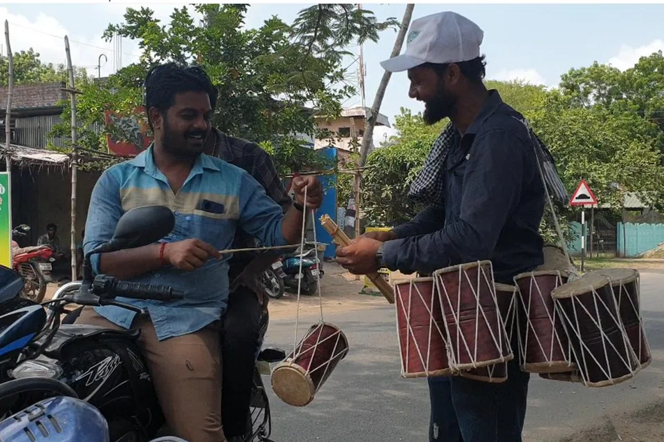 நான் அவருடன் சுமார் 30 நிமிடங்கள் பேசிக்கொண்டிருந்தேன். அதற்குள்ளாக அவர் இரண்டு டோலக்குகளை ரூ.450க்கு விற்றுவிட்டார்.