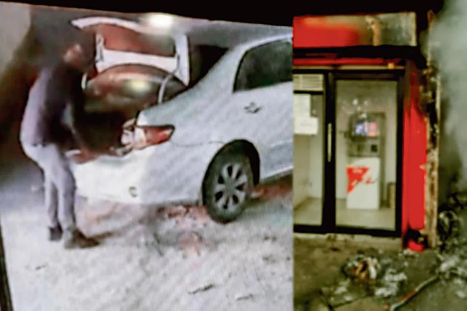 சம்பவத்தைக் காட்டும் கண்காணிப்பு கேமரா பதிவின்படி காரில் வந்த இருவரும் இயந்திரத்தை வெட்டித் துண்டாக்கி, பணத்தை எடுத்துக்கொண்டு, தீ மூட்டிவிட்டு கார் பின்பகுதியில் பணத்தை வைப்பதாகத் தெரிகிறது.