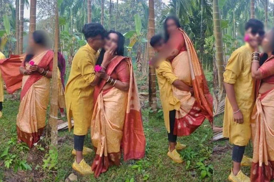 போட்டோ ஷூட்டில் அந்த மாணவர், புஷ்பலதாவை கன்னத்தில் முத்தமிட்டும் அவரைக் கட்டிப்பிடித்து தூக்கியும் இருக்கிறார்.