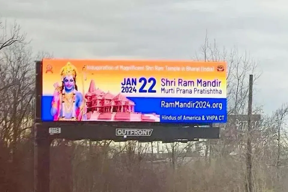 இந்நிலையில், அமெரிக்க சாலைகளில் ராமர் கோயில் திறப்பு விழா குறித்த மிகப்பெரும் விளம்பரப் பலகைகள் வைக்கப்பட்டுள்ளன. அவற்றில், ராமபிரான், அயோத்தி ராமர் கோயிலின் கம்பீரமான தோற்றம் ஆகிய படங்கள் இடம்பெற்றுள்ளன.