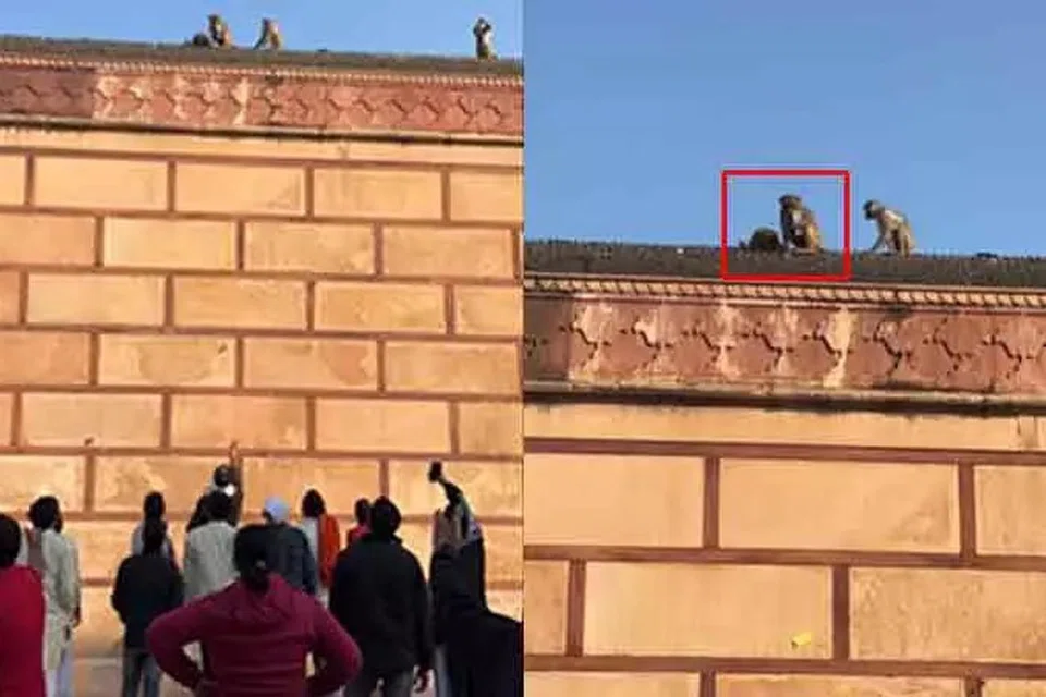 அதில், கட்டடத்தின் உயரத்தில் சில குரங்குகள் அமர்ந்து இருக்கின்றன. ஒரு குரங்கின் கையில் விலையுயர்ந்த ஐபோன் காணப்படுகிறது. அதனைத் திரும்பப் பெறுவதற்காக கைப்பேசியைப் பறிகொடுத்தவர் கீழே காத்திருக்கிறார்.