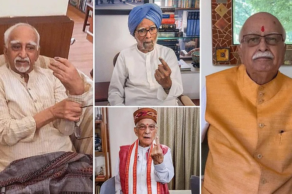தலைநகர் டெல்லியில் உள்ள ஏழு மக்களவைத் தொகுதிகளுக்கு வரும் 25ஆம் தேதி வாக்குப்பதிவு நடைபெற உள்ள சூழலில், முன்னாள் துணை அதிபர் முகமது ஹமீத் அன்சாரி, முன்னாள் பிரதமர் மன்மோகன் சிங், முன்னாள் மத்திய அமைச்சர் முரளி மனோகர் ஜோஷி, முன்னாள் துணைப் பிரதமர் எல்.கே.அத்வானி ஆகியோர் வீட்டில் இருந்தபடி தங்கள் வாக்குகளை சனிக்கிழமை மாலை பதிவு செய்தனர்.