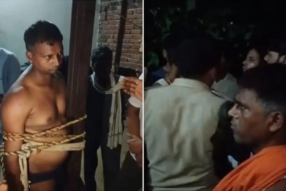 உள்ளாடை மட்டும் அணிந்த நிலையில், சந்தீப்பைத் தூணில் கட்டிப்போட்டு, கிராமவாசிகள் அவரை அடித்து உதைக்கும் காணொளி சமூக ஊடகத்தில் வலம் வருகிறது.