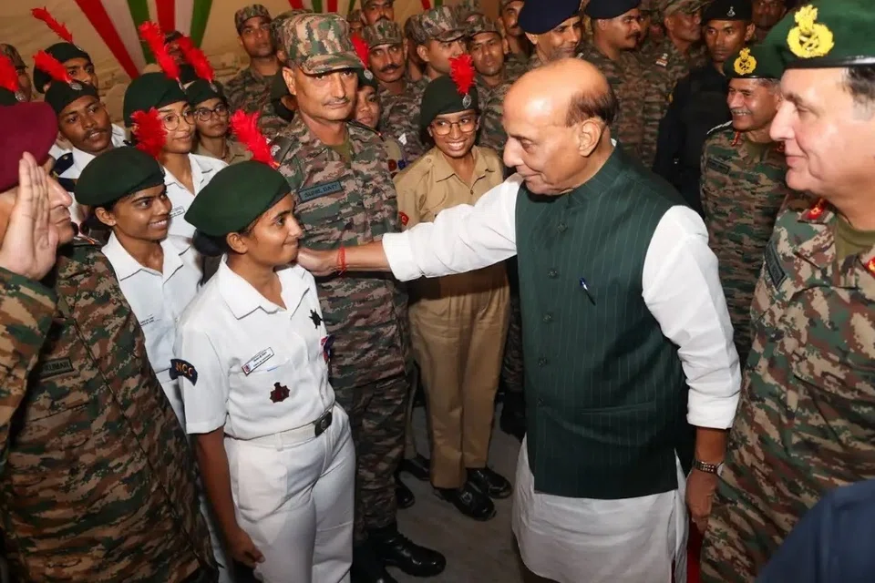 கட்ச் மாவட்டத்தில் உள்ள இந்திய ராணுவத் தளத்தில் நடைபெற்ற விஜயதசமி விழாவில் சிறப்பு விருந்தினராக ராஜ்நாத் சிங் வியாழக்கிழமை கலந்துகொண்டு உரையாற்றினார்.
