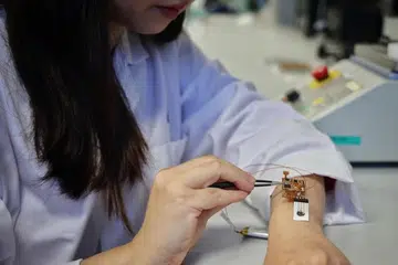 ரத்தத்தில் உள்ள கொழுப்பு, லேக்டேட், சர்க்கரை போன்றவற்றை அளவிட உதவும் கையில் அணியக்கூடிய உணர்கருவி.