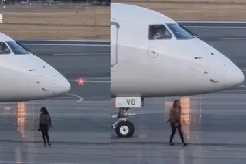கேன்பரா: தன்னை விட்டுச்சென்று விடக்கூடாது என்பதற்காக, ஓடுபாதைக்கு விரைந்தோடி, விமானத்தை நிறுத்த