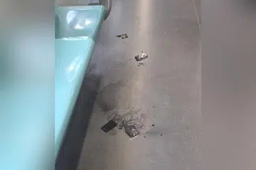 அட்மிரால்டி பெருவிரைவு ரயில் நிலையத்தில் ரயிலின் உள்ளே கையடக்க மின்னூட்டி ஒன்று தீப்பிடித்ததில்