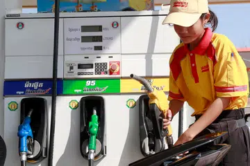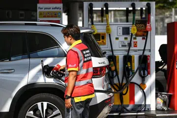 ஷெல் லேக்வியூ பெட்ரோல் நிலையத்தில் ஊழியர் ஒருவர் காருக்கு எரிபொருள் நிரப்பும் பொதுவான புகைப்படம்.