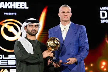 ஆண்டின் சிறந்த காற்பந்து வீரருக்கான விருதைப் பெறுகிறார் மான்செஸ்டர் சிட்டி குழுவின் எர்லிங் ஹாலண்ட் (வலது).