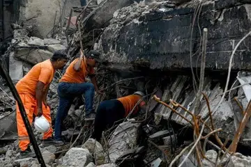 கராச்சி: பாகிஸ்தான் மீட்புப் பணியாளர்கள், கராச்சியில் இடிந்துவிழுந்த கட்டட இடிபாடுகளிலிருந்து 27