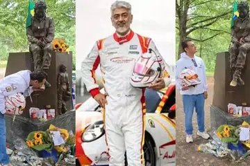 கார்ப் பந்தயங்களில் ஆர்வம் கொண்ட அஜித், தனக்கு முன்மாதிரியாகத் திகழ்ந்தவரின் உருவச் சிலையை