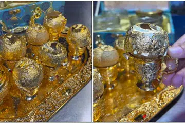 குஜராத்தின் அகமதாபாத்தை சேர்ந்த சாலை உணவு விற்பனையாளர் அறிமுகப்படுத்தி உள்ள தங்க பானிபூரி பெரும்