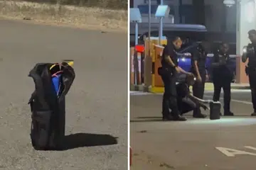 குவீன்ஸ்டவுனின் ஸ்டர்லிங் சாலை அருகே ஞாயிற்றுக்கிழமை (மே 11) அதிகாலை நேரத்தில் சாலையில் கிடந்த பை