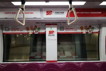 சிங்கப்பூரின் 59வது பிறந்த நாளைக் கொண்டாடும் விதமாக அனைத்து ரயில் தடங்களிலும் ஐந்து ரயில்கள்
