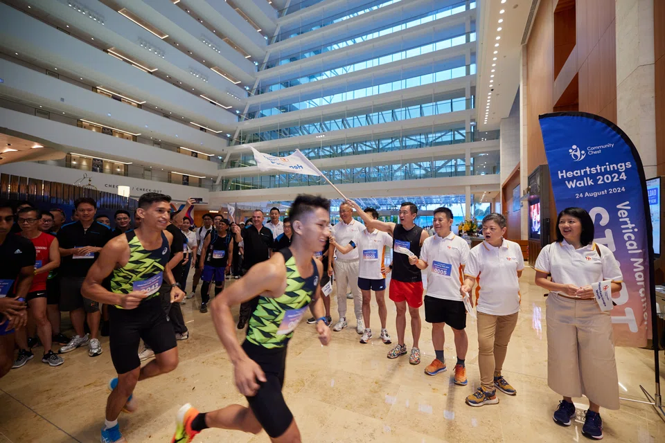சனிக்கிழமை காலையில் மரினா பே சேண்ட்ஸ் ‘ஸ்கைபார்க்’கில் சமூக உண்டியல் ஏற்பாடுசெய்த 57-மாடி செங்குத்து நெட்டோட்டத்திலும் 39 நிறுவனக் குழுக்கள் பங்குபெற்றன.