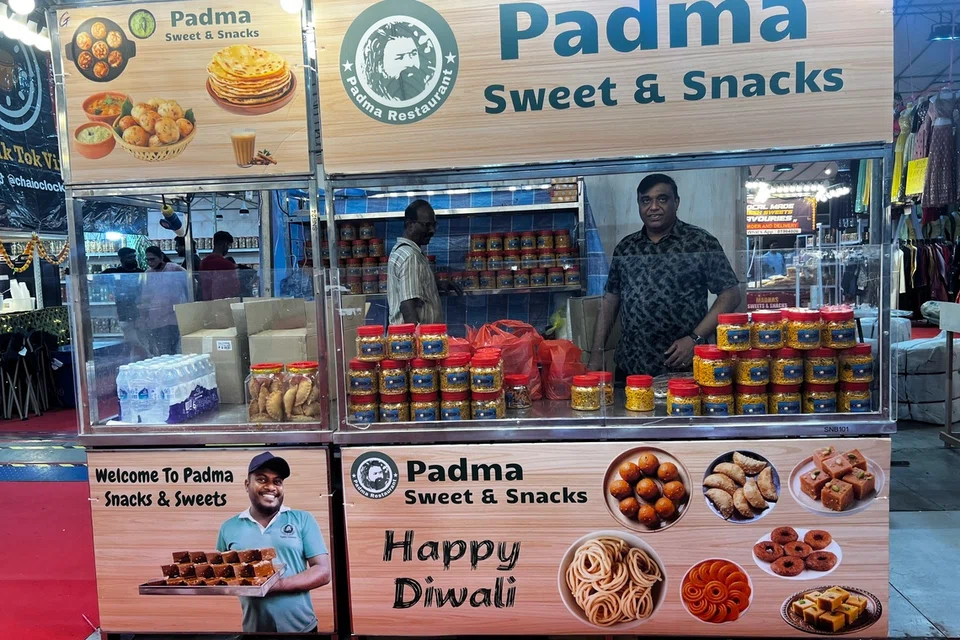 முதன்முறையாகத் தீபாவளிச் சந்தைக்கு வந்துள்ளது ‘பத்மா ஸ்வீட்ஸ் அண்ட் ஸ்னாக்ஸ்’. “எங்கள் நிறுவனத்தைப் பற்றிப் பிறர் தெரிந்துகொள்ள வேண்டும் என்பதே எங்கள் முக்கிய நோக்கம்,” என்றார் நிறுவனத்தின் பங்காளி திரு ஜான்சன். ஏற்கெனவே சிங்கப்பூரில் இரு இடங்களில் அவர்கள் கடை நடத்தி வருகின்றனர்.