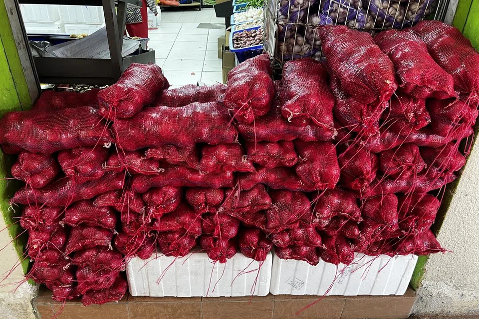 லிட்டில் இந்தியாவிலுள்ள மற்ற கடைகளுக்கு வெங்காய விநியோகம் செய்யும் யூச்சுவான் டிரேடிங் மேலாளர் சிவகுருநாதன், 53, மூன்று கிலோகிராம் பெரிய வெங்காய மூட்டையைத் தற்போது மூன்று வெள்ளிக்கு விநியோகம் செய்கிறார்.