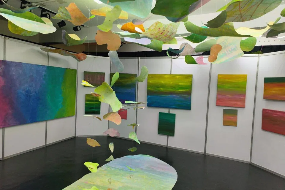 வண்ணங்கள் நிறைந்த, விழிதொட்டு பேசும் இந்த ஓவியங்கள் பரவசமூட்டும் வகையில் செங்குத்துச் சுவர்களின் மீது பொருத்தப்பட்டிருந்தன. அத்துடன், வண்ணத்துகள்களும் மேல்மட்டத்திலிருந்து தொங்கவிடப்பட்டிருந்தன.