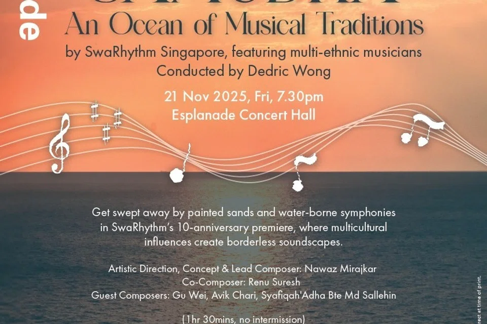 இந்தியக் கலைவிழாவின் ஓர் அங்கமான ‘கலா உற்சவம் 2025’ஐ முன்னிட்டு ‘சமுத்ரா’ என்னும் இசை நிகழ்ச்சி நவம்பர் 21 இரவு 7.30 மணிக்கு எஸ்பிளனேட் கலை அரங்கில் நடைபெறவுள்ளது.