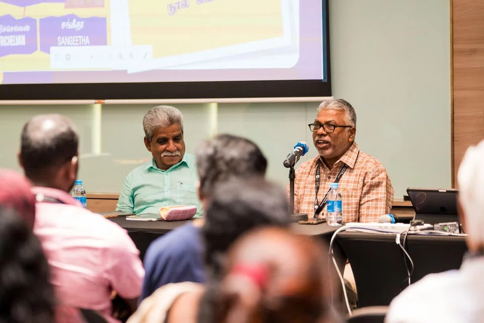 தமிழ் வாசிப்பை நேசிக்கும் அபிராமசுந்தரி, 50, பெருமாள் முருகனின் ‘மாதொருபாகன்’ புத்தகத்தை விரும்பிப் படித்ததாலும் மற்றொரு நிகழ்வில் அவர் பேசியதை ரசித்ததாலும் மீண்டும் அவரது உரையைக் கேட்க வந்ததாகக் குறிப்பிட்டார்.