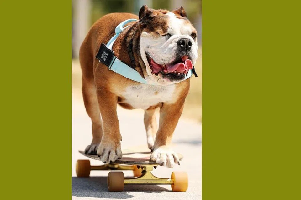 ஆஸ்திரேலியாவைச் சேர்ந்த ‘ஜியோட்டோ’ என்ற புல்டாக் (Bulldog) ஸ்கேட்போர்டு ஓட்டுவதில் திறமையானது! ஸ்கேட்போர்டில் 100 மீட்டர் தூரத்தை மிக வேகமாக கடக்கும் நாய் என்ற ‘கின்னஸ் உலக சாதனை’யைப் படைக்க ஜியோட்டோ இப்போது தயாராகி வருகிறது.