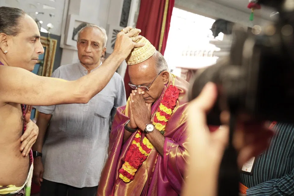 ஸ்ரீ ஸ்ரீநிவாசப் பெருமாள் கோயிலில் உள்துறை, சட்ட அமைச்சர் கா. சண்முகம் வழிபாடு. - படம்: பே. கார்த்திகேயன்