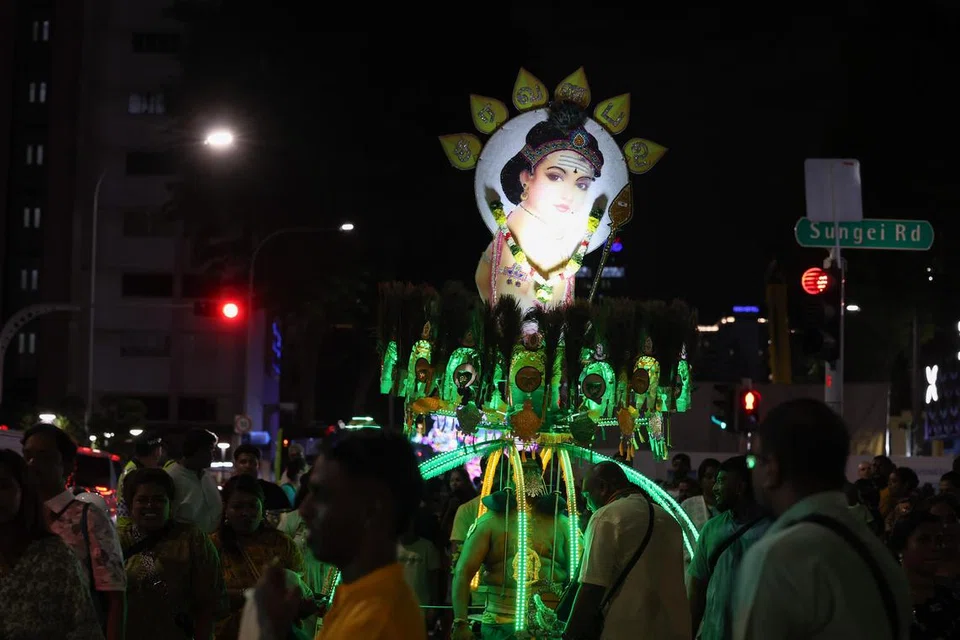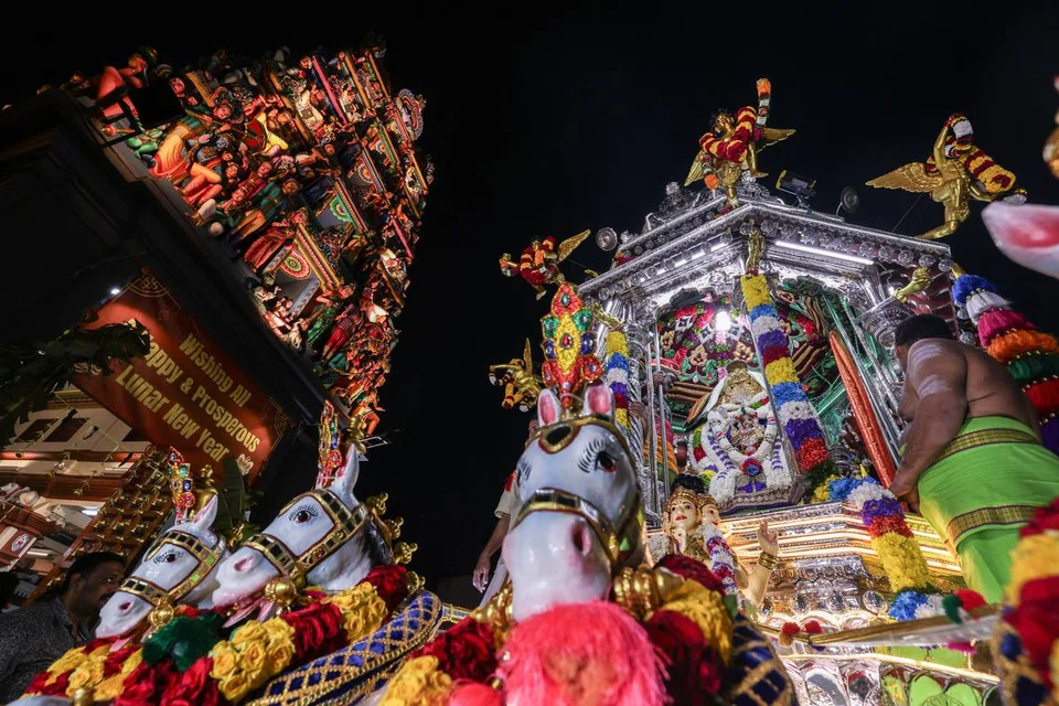 கியோங் சைக் ரோடு ஸ்ரீ லயன் சித்தி விநாயகர் கோயிலிலிருந்து திங்கட்கிழமை (பிப்ரவரி 10) வெள்ளி ரதம் புறப்பட்டது. - படம்: த.கவி