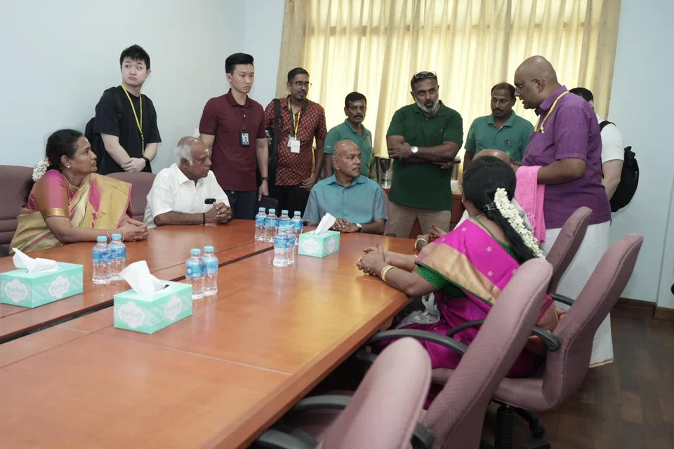 ஸ்ரீ தெண்டாயுதபாணி ஆலய நிர்வாகத்தினருடன் அமைச்சர் கா. சண்முகம் உரையாடுகிறார். - படம்: பே. கார்த்திகேயன்