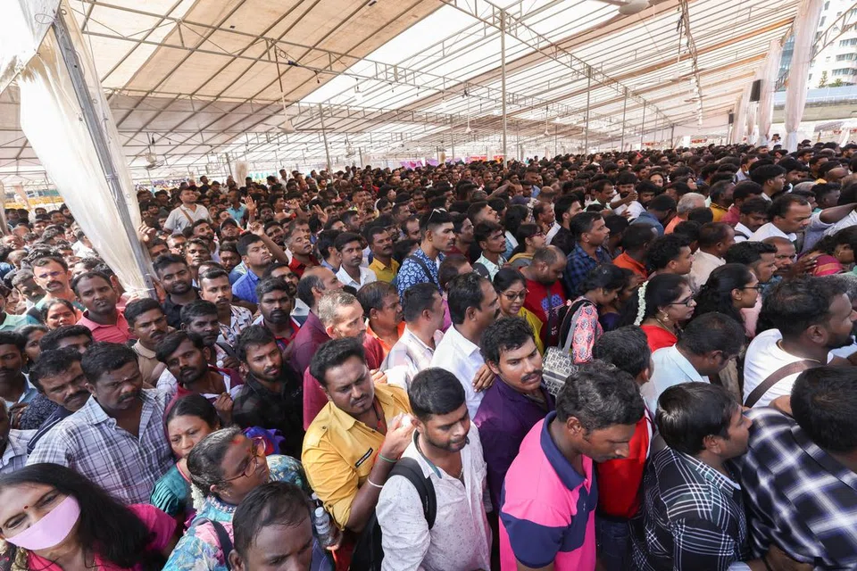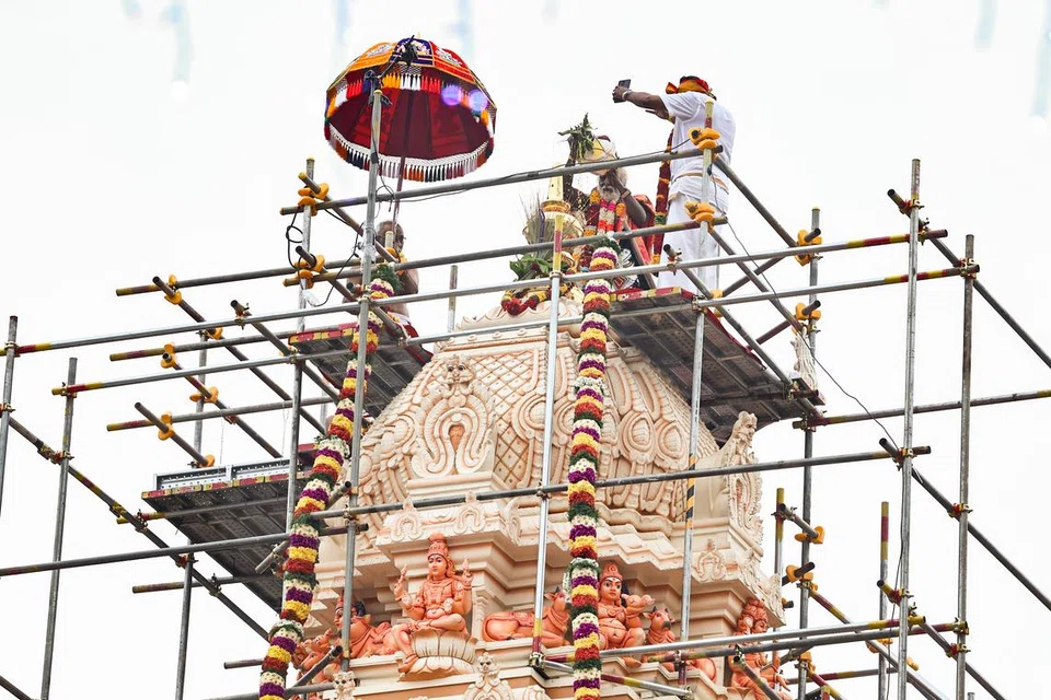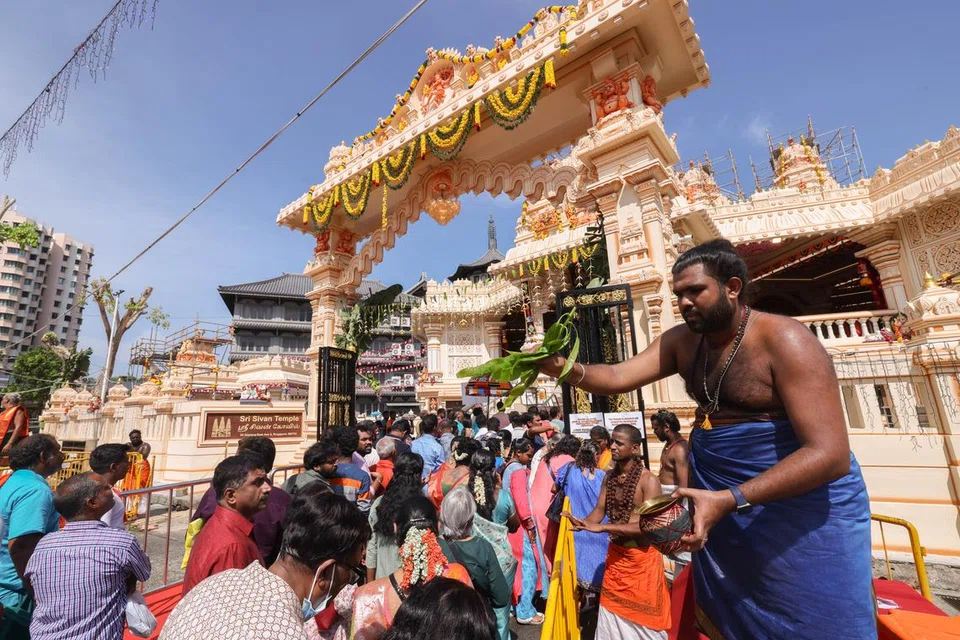 ஆலயம் செல்லக் காத்திருக்கும் பக்தகோடிகள். குடமுழுக்கை நேரில் காண 20,000க்கும் அதிமானோர் திரண்டதாக இந்து அறக்கட்டளை வாரியம் தெரிவித்தது. - படம்: த.கவி