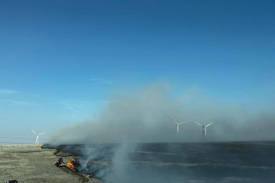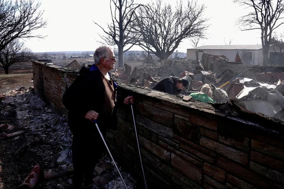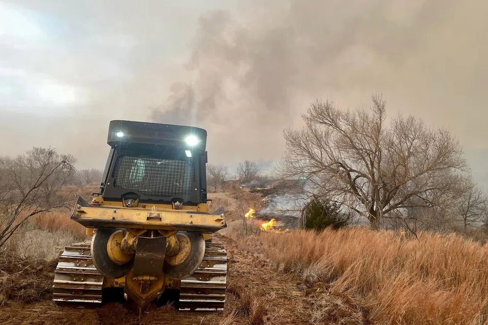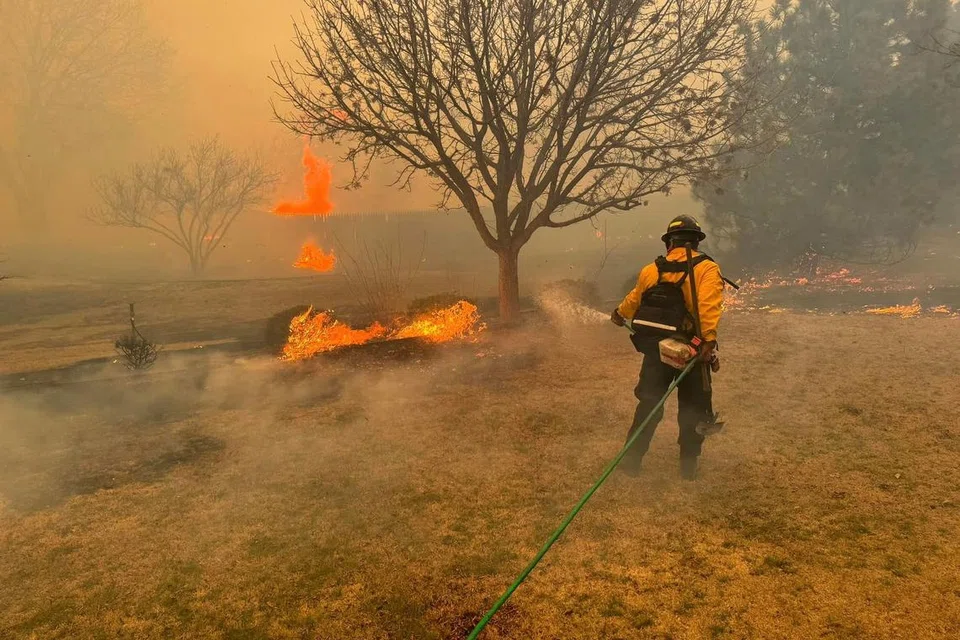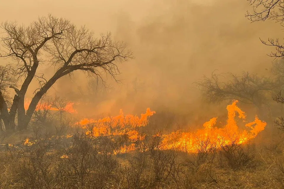 அமரில்லோ நகருக்கு அருகே கொழுந்துவிட்டு எரியும் காட்டுத்தீ. -