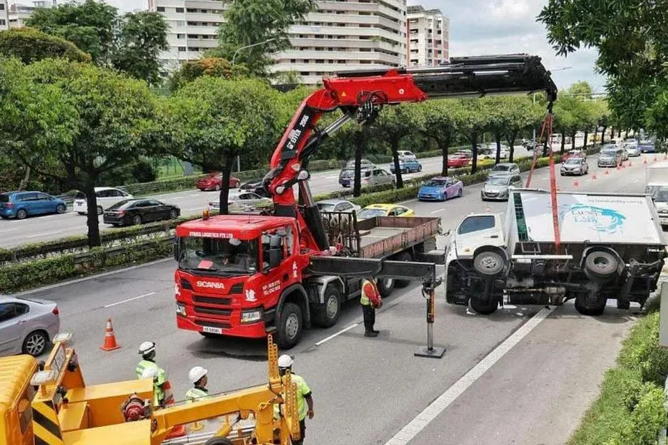 33 வயது லாரி ஓட்டுநர் மருத்துவனையில் சேர்க்கப்பட்டுள்ளதாகவும் அவர் சுயநினைவுடன் இருப்பதாகவும் குடிமைத் தற்காப்புப்படை தெரிவித்தது.