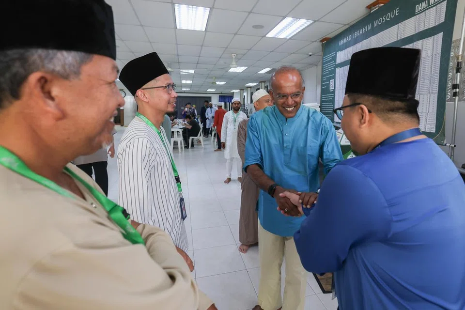 நோன்புப் பெருநாளை முன்னிட்டு, அகமது இப்ராகிம் பள்ளிவாசலுக்குத் திங்கட்கிழமை (மார்ச் 31) வருகை தந்திருந்த நீ சூன் குழுத்தொகுதி நாடாளுமன்ற உறுப்பினருமான திரு சண்முகம் செய்தியாளர்களிடம் பேசினார்.
