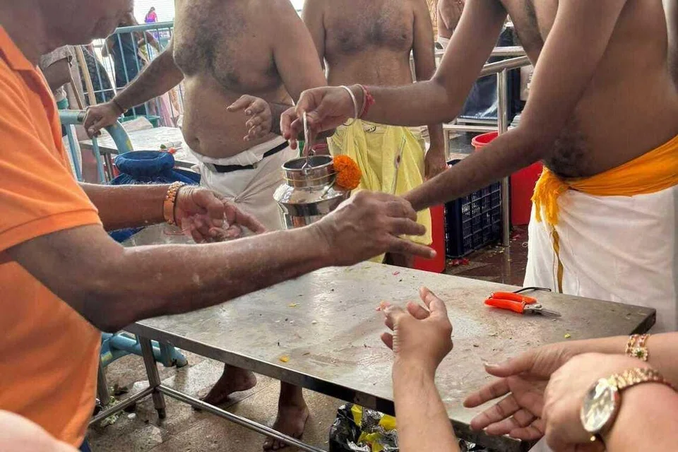 வேலை நல்லபடியாகச் செலுத்தியதும் ஸ்ரீ வீரமாகாளியம்மன் கோயிலில் அவர்கள் அன்னதானமளித்தனர். “இது என் மாமனார் திரு சிங்காரம் கடைப்பிடித்துவந்த வழக்கம்,” என்றார் திரு புருஷோத்தமன்.
