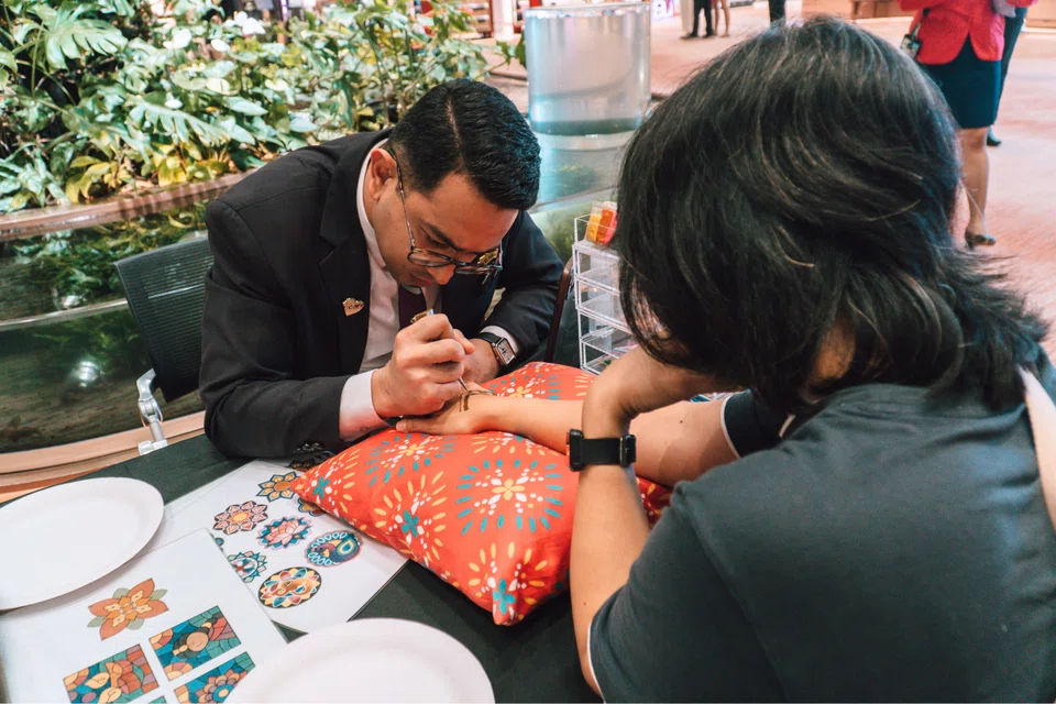 மருதாணியிடும் நடவடிக்கைகளுக்கு ஏற்பாடு செய்யப்பட்டுள்ளன. - படம்: சாங்கி விமான நிலையக் குழுமம்