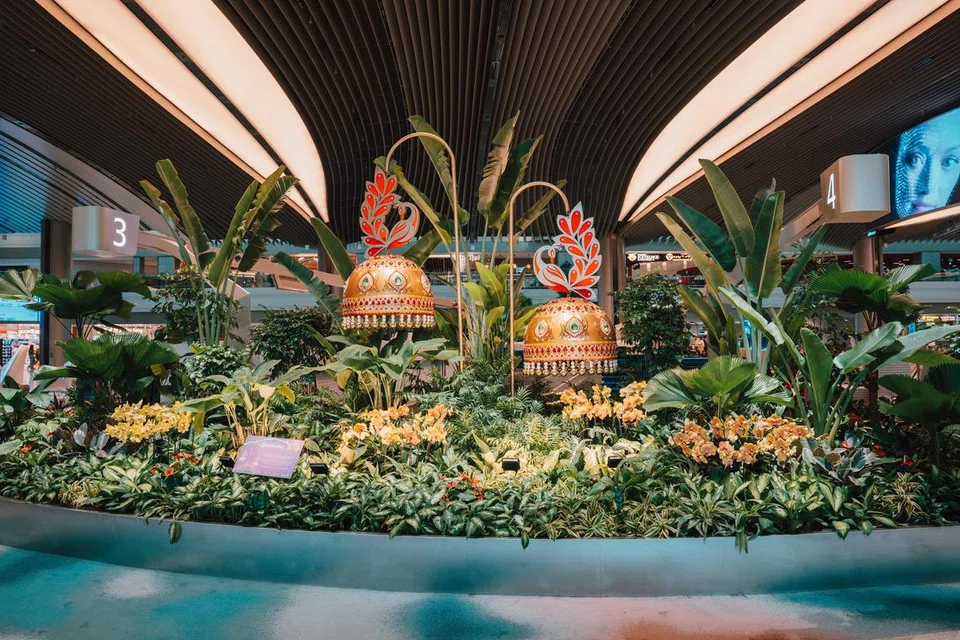 தீபாவளியை முன்னிட்டு கண்கவர் அலங்காரங்களால் பயணிகளைக் கவர்ந்து வருகிறது சாங்கி விமான நிலையம்.