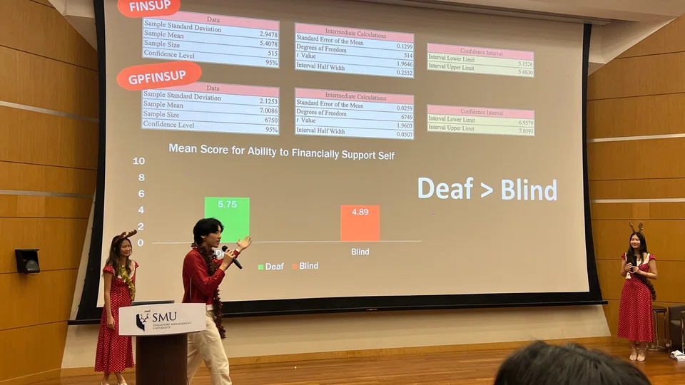 ‘எங்கேஜ்.மீ’ எனும் இந்த ஆய்வுக்கு ‘எஸ்எம்யு’ புள்ளியியல் முதன்மை விரிவுரையாளர் ரோசி சிங் தலைமையேற்று, சிங்கப்பூர்க் கண்பார்வையற்றோர் சங்கம் (SAVH), காது கேளாதோர் சங்கம் (SADeaf), எஸ்எம்யு புள்ளியியல் மாணவர்கள் 208 பேர் ஆகியோரின் ஆதரவுடன் நடத்தியுள்ளார்.